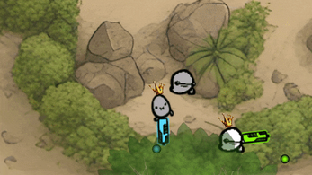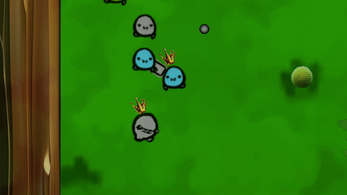 The Voogies of Boogie Kingdom have all formed legions and are fighting the conquest of lands before naptime. As one of the Voogie Kings, you must neutralize other Voogies with guns matching their legion color (friendly fire is on). Neutralizing the others' Kings allows the remaining Voogies on that legion to join the conquering legion. But at a price; the newly allied Voogies don't have as much loyalty to protect their new King. Be the last King standing, or the strongest legion remaining before naptime to claim victory. The battle can end in a draw if the strongest sides are equal in loyalists.